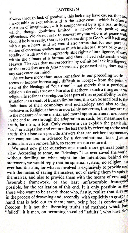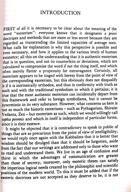 This is a work in which the author explains why esoterism is both possible and necessary and how it applies to the various levels of human experience. It is a question of authentic esoterism, and not of its counterfeits and deviations. The author shows how esoterism is the intellectual principle capable of explaining the formal contradictions of the religious systems that have been highlighted—and presented as a sign of weakness— in the “scientific” age; and also how it constitutes the spiritual way whereby we may reach the truth or reality, despite the confusions and obstacles with ‘which technological civilization and its accompanying philosophy seek to obscure our vision and weaken our resolve. As the author says: “Just as rationalism can remove faith so esoterism can restore it.” New readers of Frithjof Schuon will not fail to be impressed by the vigour and precision of his writing and by his authoritative handling of complex problems, and they will delight in discovering how the economy and “symmetry” of his style are accompanied by a unique poetic quality. The volume now presented is undoubtedly one of the most all-embracing of his works.