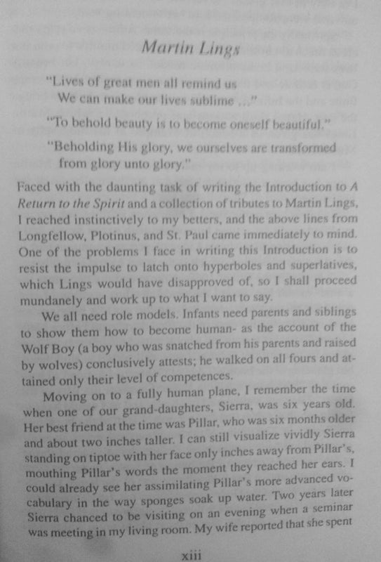 Questions and Answers Martin Lings This autobiographical work answers questions like, ‘Do religions contradict one another?” “What is the spiritual significance of tears and laughter?” and, ‘What is the Qur’anic doctrine of the Afterlife and how is it related to Sufism?” As Lings, in fact, “returned to the Spirit” on the completion of this summing-up, an appended In Memoriam includes recollections from the world over by those who read his books, may have known him personally, or were under his spiritual direction. *** “In Dr Lings’ case, he saw beneath the surface of things and helped us to penetrate the veil behind which lies the sacred meaning to so many of life’s mysteries. He helped us to look beyond the literal and to comprehend that there are many layers of meaning within the hidden universe— something which science is now at last beginning to recognize through the acknowledgement of an inherent order and harmony to the world about us and within us.” — From the Foreword, HRH The Prince of Wales