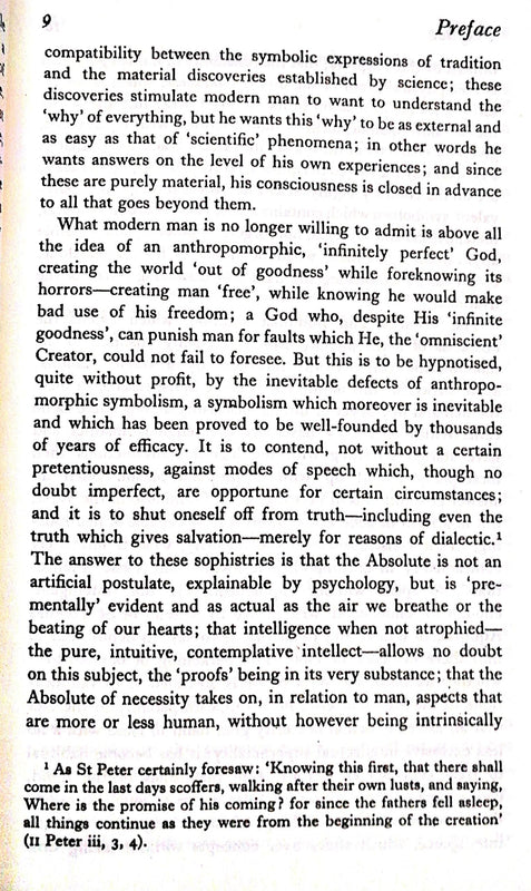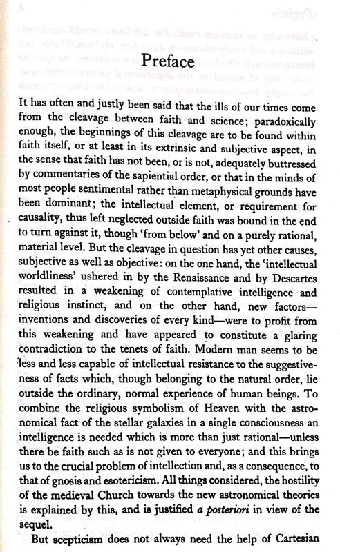 In this book Schuon deals with a wide range of metaphysical, doctrinal and practical matters, such as, for example, methods of prayer or the discipline of charity. His profound insights into the great religious traditions are in the last chapter united into a picture of the six essential aspects of spiritual wisdom, which he says can be found in every true and complete way. In a time of increasing scepticism or anxious bewilderment and confusion in relation to the realm of the spirit this book will repay thoughtful study. Some readers will find that religious ‘problems’ when related to their appropriate levels will disappear; others that new questions and perceptions will awake. Whatever the religion a man may follow Schuon’s remarkable writings should provide much material for thought and no small measure of spiritual stimulus.
