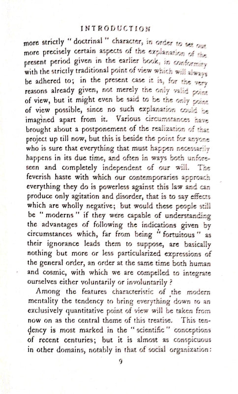 The Reign of is an attack on the scientism of the modern World. In these beautiful and profound pages, Rene Guenon looks back to an ancient Wisdom, once common to both East and West but now almost entirely lost. Contemporary civilisation itself— with its industrial societies and illusory notions of progress— is his target. In particular, he shows that today’s sciences and social sciences are dominated by a quantitative approach, thus they neglect the idea of quality. To this “reign of quantity” he opposes the sacred metaphysics of the ancients, which he sees as rooted in Divine Truth. His book is ultimately a warning against the real danger that humanity faces today— a warning all the more urgent because that danger is unperceived by those from whom guidance is sought and expected. *** “Works of Rene Guenon present the writings of one of the greatest sages of our time, whose voice is even more important today than when he was alive.” —Huston Smith